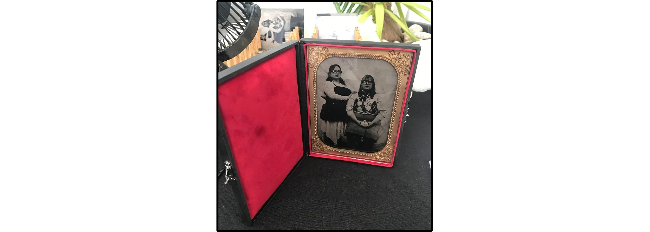 The postie brought me a parcel yesterday. Once opened, I was overwhelmed with such a lovely gift. It was a tintype/ambrotype case from my good friend and fellow collodionista, Gregg McNeill. Gregg has spent a lot of time in the past year perfecting these cases. They have been designed based on a historical reference. Each case is individually and lovingly hand-made from 5 cast resin pieces.